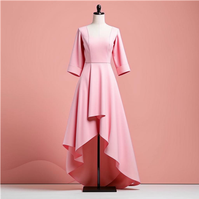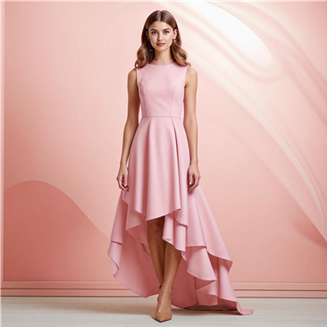 Изображения, сгенерированные Fusion Brain по запросу "асимметричное платье нежно-розового цвета"